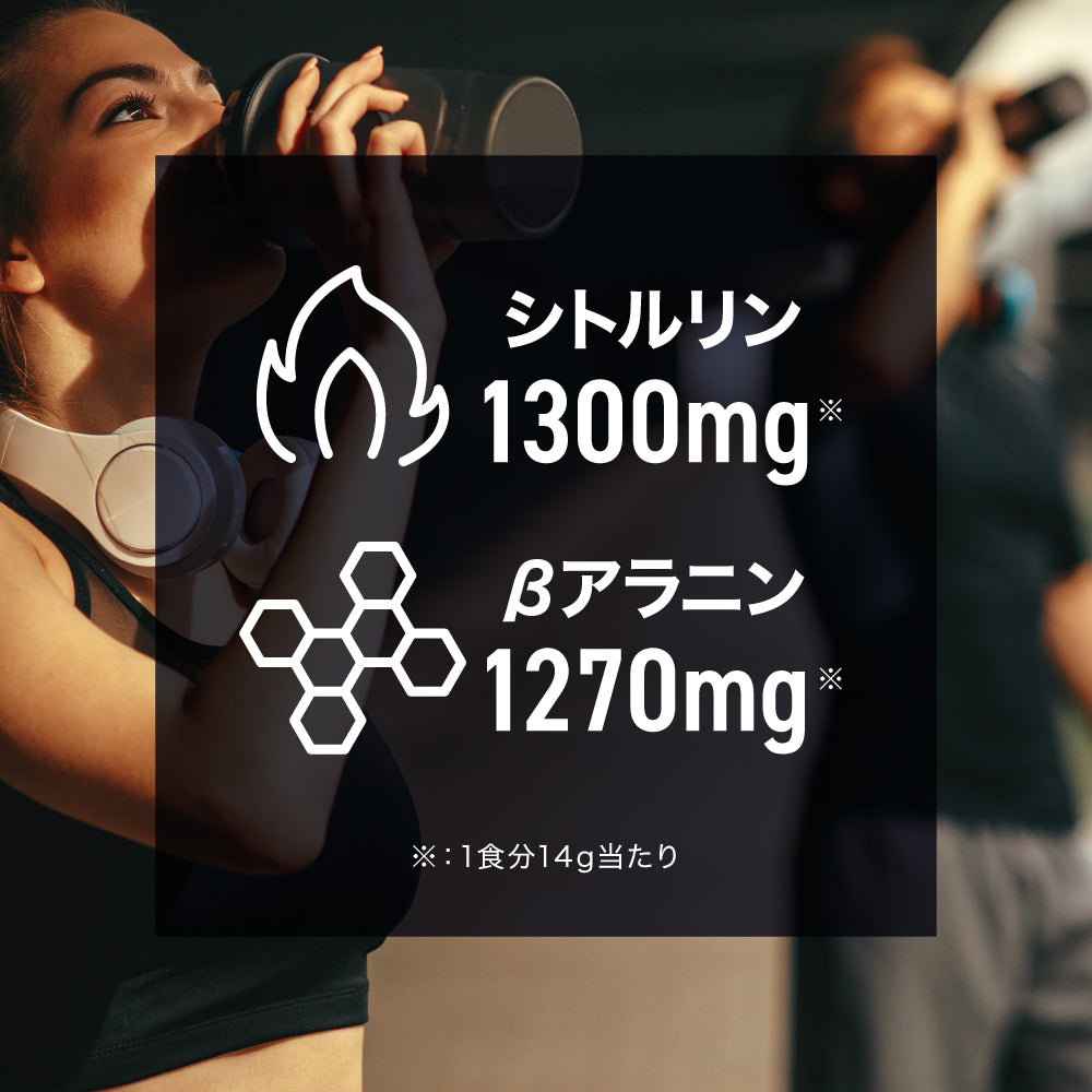 さらに、高強度の運動中に起きやすい筋肉pHの低下を中和する効果のあるカルノシンの合成を促進するβアラニンを配合し、パフォーマンスをサポートします。
